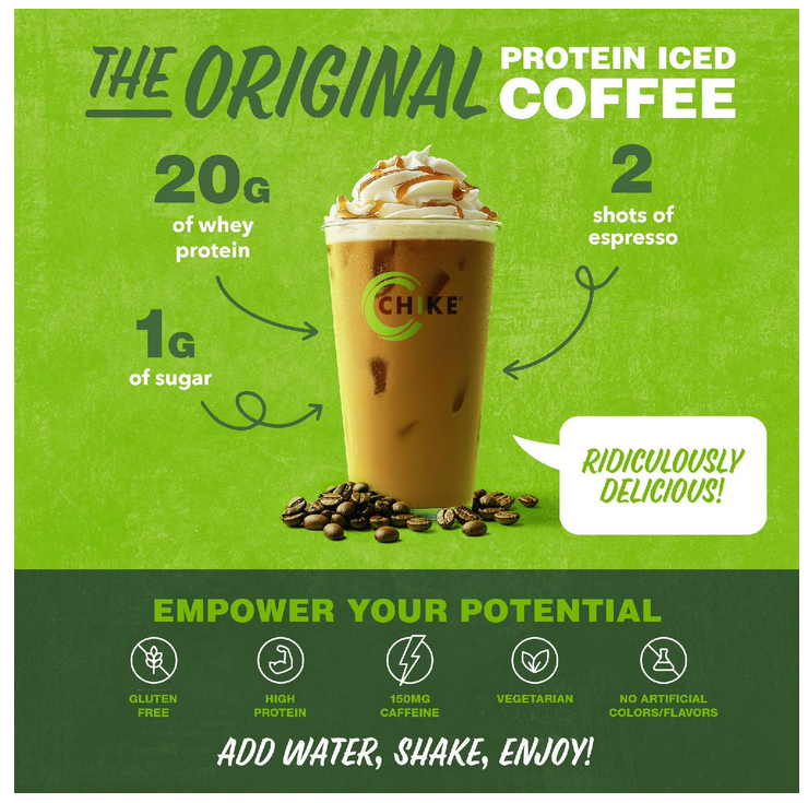 High-protein iced coffee with real espresso and ridiculously delicious mocha flavor. Chike High Protein Iced Coffee delivers a smooth, energizing blend of 20g whey protein and 2 shots of real espresso in every serving. With only 1g sugar and 120 calories, it’s the perfect way to kickstart your day or fuel your workout without sacrificing flavor.