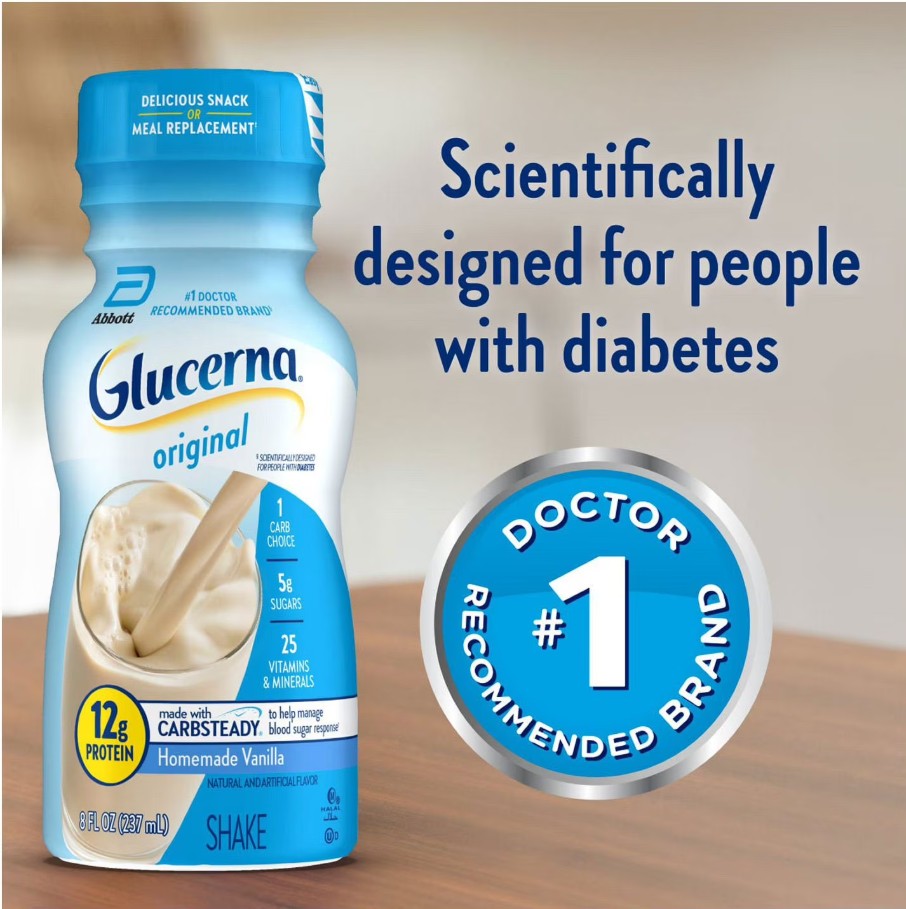 Glucerna 12g Vanilla Meal Replacement Shake – 24 Pack | Low Glycemic & Blood Sugar Support