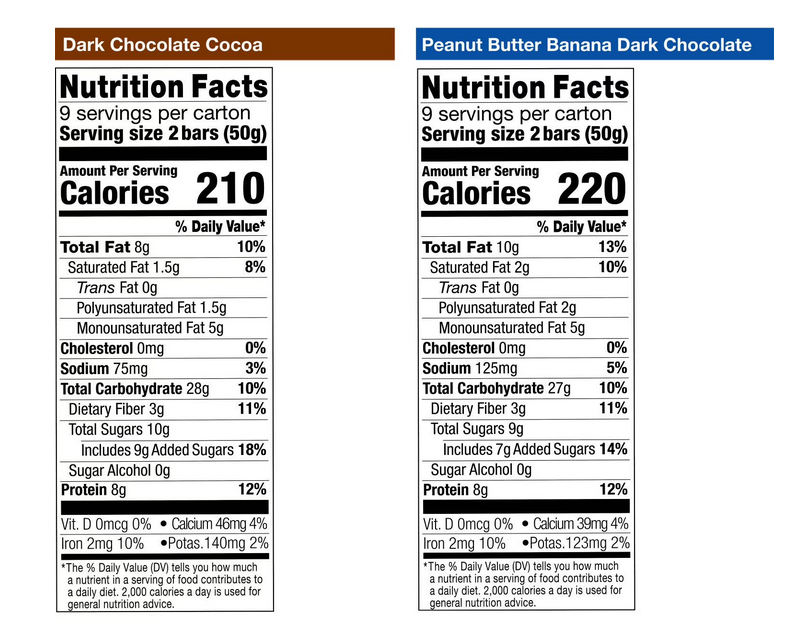 - Flavors: 9 Dark Chocolate Cocoa packs + 9 Peanut Butter Banana Dark Chocolate packs