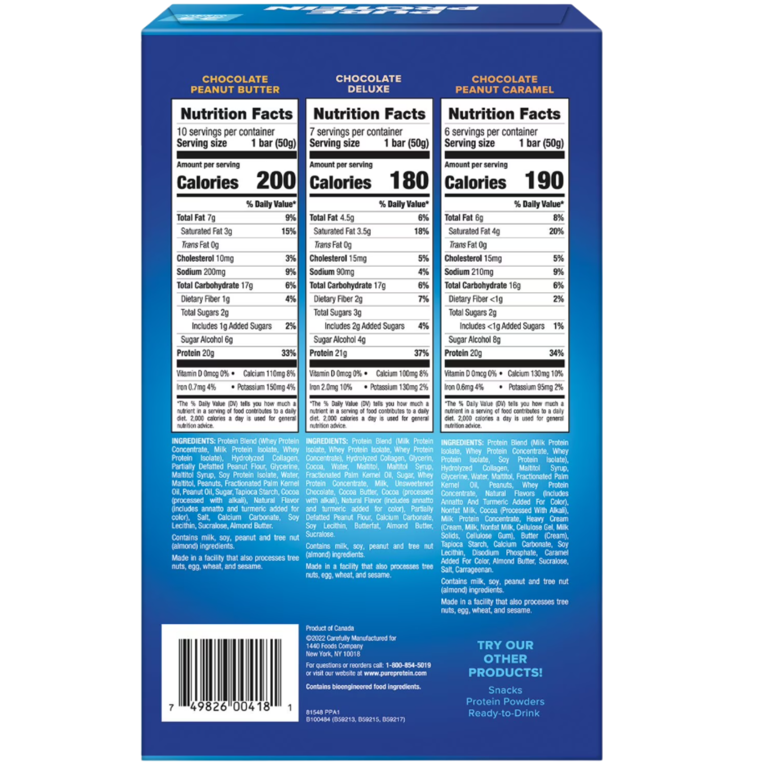 Pure Protein Bars Variety Pack – Chocolate Deluxe, Peanut Butter & Chewy Chip – High Protein, Low Sugar & Gluten Free – 23 Count