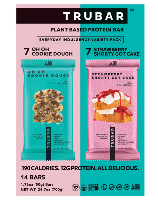 TRUBAR Plant Based Protein Bar Variety Pack – 14 Count | Oh Cookie Dough & Strawberry Shorty, 12g Protein, Low Sugar, Clean Ingredients